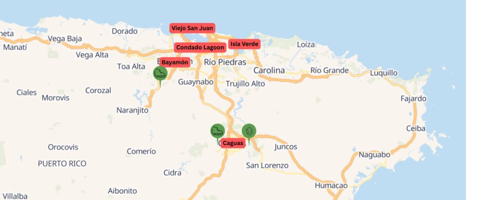 Area Covered: San Juan, Old San Juan, Condado Lagoon, Isla Verde, Bayamón, Caguas